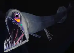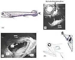 - ^ Kenaley, Christopher P. (2009). "Comparative innervation of cephalic photophores of the loosejaw dragonfishes (Teleostei: Stomiiformes: Stomiidae): Evidence for parallel evolution of long-wave bioluminescence". Journal of Morphology. 271 (4): 418–437. doi:10.1002/jmor.10807. ISSN 0362-2525. PMID 19924766. S2CID 15947385.