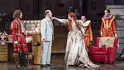 Kiss Me Kate Opera North . Dir. Jo Davies. Revival Dir.Ed Goggin. Conductor James Holmes.left to right - Quirijn de Lang, Malcolm Ridley, Stephanie Corley, Joseph Shovelton, John Savournin