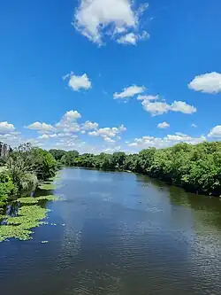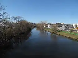 The Malden River is a 2.3-mile-long (3.7 km)[1] river in Malden, Medford, and Everett, Massachusetts. It is roughly 675 feet (206 m) wide at its widest point and is very narrow at its smallest point. Its banks are largely occupied by industrial business, and the river is scarcely used or even mentioned. Its water quality is worse than most local waters, including the Mystic River, into which it flows. The Mystic River Watershed Association is working and creating educational programs to help the environment. The Association works on projects to improve the Mystic River and tributaries, lakes and ponds and greenways along the waterfronts. Rivergreen Park is part of the Mystic Greenways and is along the Malden River. [2][3] The Friends of the Malden River organize clean-up events.[4]
