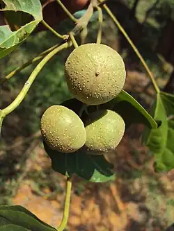 Mallotus nudiflorus (syn. Trevia nudiflora), the false white teak, is a species of flowering plant in the family Euphorbiaceae.[2] It is native to the Indian Subcontinent, southern China, Southeast Asia, western Indonesia, and the Philippines.[1] It is a medium-sized tree, typically 10–20 m (33–66 ft) tall.[2]