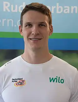 Malte Jakschik (born 3 August 1993) is a German former representative rower. He was a three time world champion, a two time Olympic silver medallist and held a seat in the German senior men's eight — the Deutschlandachter — constantly from 2014 to 2021. At the 2016 Summer Olympics in Rio de Janeiro, he rowed in Germany's men's eight which won the silver medal.[1] He rowed at six when the Deutschlandachter at the 2017 World Rowing Cup II set a world's best time of 5.18.68, which was still the standing world mark as of 2021.[2] He rowed in the German men's eight at Tokyo 2021 and won a second Olympic silver medal.