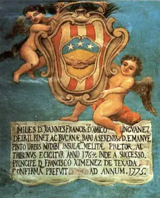 The coat of arms of Baron Gio Francesco D’Amico Inguanez, 1775