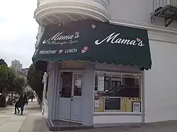 Mama's on Washington Square is a family-owned restaurant located in San Francisco's North Beach neighborhood. The restaurant sits on the corner of Stockton Street and Filbert Street, across from Washington Square Park. Founded in 1964, Mama's serves breakfast, brunch, and lunch as well as its own baked goods and gift baskets. The restaurant specializes in omelettes, salads, and sandwiches, and sells homemade jam, fresh baked bread, and pastries.