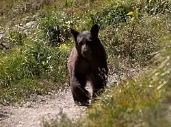 The American black bear (Ursus americanus) is North America’s smallest and most common species of bear. It is a generalist animal, being able to exploit numerous different habitats and foodstuffs. The American black bear is listed by the IUCN as least concern, due to the species’ widespread distribution and a large global population, estimated to be twice that of all other bear species combined.[3]