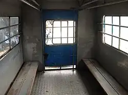 Interior of a "lorry bus" serving Man Uk Pin.