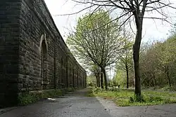 Following the closure of the railway, the route fell into disuse. The buildings at Mangotsfield became derelict, with some demolition taking place. The central and southern island platforms remained in situ, as did some of the walls of the central platform buildings.[4]: 97  The tracks were lifted in 1972, but that same year a group of local residents, aided by Robert Adley MP, set up the Bristol Suburban Railway Society, which would later become the Avon Valley Railway. The society's aim was reinstatement of the route from Bristol to Bath via Mangotsfield from a base at Bitton, however after reaching Oldland Common in 1988 further extension towards Mangotsfield became impractical due to housing and transport developments.[20][35] The trackbed through Mangotsfield was disused until the late 1970s when cycling charity Sustrans began to convert the route from Bristol to Bath into a cycle path. The path, built between 1979 and 1986 and known as the Bristol & Bath Railway Path, was the first major project undertaken by Sustrans, and is the oldest part of the National Cycle Network.[36][37][38] Part of National Cycle Route 4, the path now handles over a million travellers per year.[36][37]