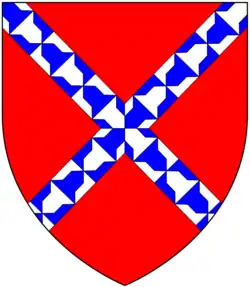 - ^ These arms of Willington a saltire vair are shown on the tomb in Barcheston Church, Warks., of William Willington (died 1555), of Willington manor and his wife Anne, whose alabaster effigies lie on top of the tomb (Victoria County History, Vol.5, Warwickshire, Kington Hundred). Also the same arms are listed in the Heralds' Visitation of Warwickshire, 1619 (Wellington de Hurley): Gules, a saltire vair. The Dering Roll of Arms lists the arms of "Rauf de Wiltone" as Gules, a saltire vair. Tristram Risdon in his Survey of Devon (1630) gives the arms of Willington of Umberleigh apparently incorrectly as: Party per pale dente argent and gules, a chief or (1810 edition, p.317) and these arms are shown in 19th-century stained glass in Atherington Church impaling the arms of Champernowne: Gules, a saltire vair between 12 billets or