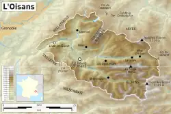 During the Second World War, the Oisans maquis was an important center for the French Resistance, in the Oisans region between the Belledonne range and Grenoble to the north, the Grandes Rousses massif of the Alps and the Croix de Fer pass to the east, the Drac valley to the west and the Barre des Écrins and the Provencal Alps to the south.