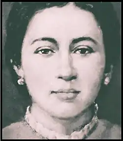 María Trinidad Sánchez (June 16, 1794 – February 27, 1845) also known by her nickname, Mother Founder, was a Dominican freedom fighter and a heroine of the Dominican War of Independence. She participated on the rebel side as a courier. Together with Concepción Bona, Isabel Sosa and María de Jesús Pina, she took part in designing the Dominican flag.[1][2][3][4] She was executed after having refused to betray her collaborators in exchange for her life. The María Trinidad Sánchez Province is named after her. Her remains rest in the National Pantheon of the Dominican Republic in Santo Domingo.