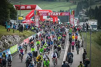 The Maratona dles Dolomites (Ladin for "Dolomites Marathon"; Italian: Maratona delle Dolomiti), is an annual single-day road bicycle race covering seven mountain passes in the Dolomites. Open to amateur cyclists, the Maratona—with 9,000 riders chosen from 30,000 applicants,[1] from over 70 nations—is one of the biggest Italian Granfondo bicycle races.[2][3] National Geographic described it as "one of the biggest, most passionate, and most chaotic bike races on Earth."[4]