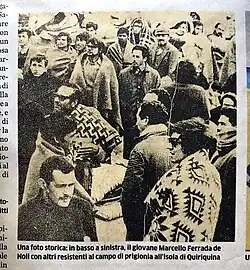 Text in the image – "A historical photo: the young Marcello Ferrada de Noli and other Resistance members at Quiriquina Island prisoners camp". L'Ecco di Bergamo Jan 20, 2019.