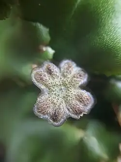 Marchantia berteroana, male gametangium, known as an antheridiophore