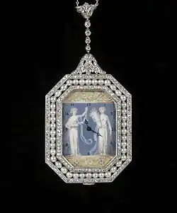 The designers used gemstones such as zircons, chrysoberyls, tourmalines, opals, garnets, beryls, spinels, and peridots.[3] French miniature portraitist Fernand Paillet designed a pendant for them.