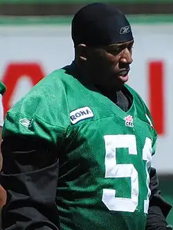 34. ^ Harder, Greg (June 7, 2008). "Lineman getting a chunk of respect". Regina Leader-Post. p. C1.