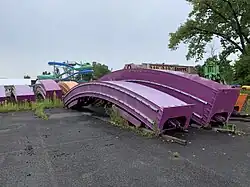 In February 2024, both rides were delivered to Niagara Amusement Park, close to 600 miles away outside of Buffalo, New York.[1] Niagara had been permanently closed in 2020 by then-operators Apex Parks Group, who promptly dismantled a majority of the park's rides.[17] Upon taking control of the park, IB Parks & Entertainment sought out as many second-hand replacement rides as they could acquire.[18] Revolution was constructed over the summer with plans to reopen it as Midway Mayhem; it remains unknown if or when Mardi Gras Hangover will be constructed.[19]
