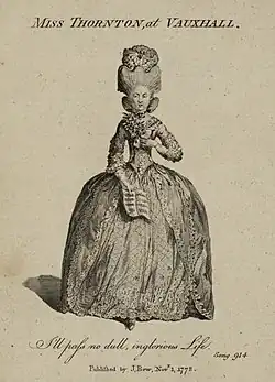 She came to notice in 1778 when she was singing songs by James Hook in Vauxhall Gardens. She was Hook's pupil and she sang there each summer until 1780.[1] She moved to singing Ballad opera and appeared in Love in a Village at the Covent Garden Theatre in 1779.