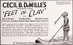 trade advertisement for movie version of "Feet of Clay" (1924)