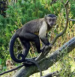 The Margarita Island capuchin are medium-sized monkeys with black arms, legs, tail, and head with a brown abdomen and back.[2] They are primates that tend to travel in groups of 2–18 monkeys.[1] Margarita Island capuchins are frugivorous but also enjoy bromeliad leaves, insects, cactus, and small vertebrates.[2] Margarita island capuchins are the main primate on Margarita Island, serving as an important seed distributor.