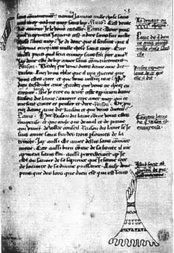 The Inquisitor spoke of her as a pseudo-mulier "fake woman" and described the Mirror as "filled with errors and heresies".[15] A record of the trial was appended to the chronicle begun by Guillaume de Nangis. Despite the negative view taken towards Marguerite by Nangis, the chronicle reports that the crowd was moved to tears by the calmness with which she faced her death.[16]