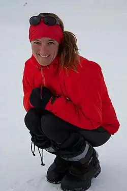 Maria Leijerstam is a British polar adventurer. In 2013 she became the first person to cycle to the South Pole from the edge of the continent.[1][2] Leijerstam started her expedition on the Ross Ice Shelf at the edge of the Antarctic continent, and cycled for 10 to 17 hours each day with no rest days, and the total distance cycled was 638 km (396 mi). Leijerstam's cycle was a three-wheeled design, and she reached the pole faster than any previous skiing expedition.