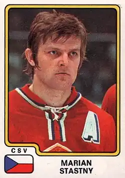 Marián Šťastný (born 8 January 1953) is a Slovak former professional ice hockey right winger who played for five seasons in the National Hockey League from 1981 through 1986 for the Quebec Nordiques and Toronto Maple Leafs. Prior to moving to the NHL Šťastný had played in Czechoslovakia for Slovan ChZJD Bratislava with his brothers, Peter and Anton. They defected in 1980, joining the Nordiques, though Marián waited until 1981 to join them.