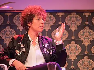 Together with Max Czollek, Salzmann curated the ‘Disintegration Congress’ (2016)[27] and the ‘Radical Jewish Culture Days’ (2017),[28][29] two social sculptures where international figures addressed questions of contemporary Jewish identity. ‘The Maxim Gorki Theatre used to be a post-migrant theatre,’ Dirk Pilz wrote in the Berliner Zeitung. ‘Now it’s a disintegration theatre. Disintegration means: I’m not joining in. The one thing it doesn’t mean is: I’m keeping out of this.[30] As part of the Radical Jewish Culture Days, Salzmann directed Die Geschichte vom Leben und Sterben des neuen Juppi Ja Jey Juden (‘The Life and Death of the New Yippee Yeah Yeah Jew’), a theatre monologue by Sivan Ben Yishai.[30][31][32]