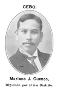 Mariano Jesús Cuenco y Diosómito (January 16, 1888 – February 25, 1964)[1] was a Filipino politician and writer from Cebu. He was the 4th President of the Senate of the Philippines.