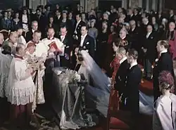 In 1960 Zufía for the first time aspired to public post; he headed a list of Carlist candidates, who from the so-called tercio familiar pool and on a hardly veiled anti-Francoist ticket ran for the Pamplona town hall. He emerged successful, only to find that his mandate has been annulled by the electoral office. He did not meet the requirement of 2-year-residence in the district; the later biography presents this episode as a minor technicality used by the administration to prevent opposition candidates from entering the ayuntamiento.[41] During the next campaign of 1963 Zufía did not stand, but he co-ordinated the provincial Carlist campaign; it resulted in 3 party candidates having been elected.[42] He welcomed what looked like revitalization of Carlism, promoted by prince Carlos Hugo and his entourage; in 1964 Zufía and his wife travelled to Rome to attend the wedding ceremony of the prince.[43] In Navarre he was already emerging as a recognized Carlist personality.