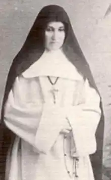 At the third General Chapter of the society, on 14 September 1882 Mother Marie-Salomé was elected Superior General of the "Sœurs Enseignantes et Hospitalières de Notre Dame des Missions d’Afrique". New rules were promulgated for the congregation, similar to those of the White Fathers.[3] On 6 April 1885 Lavigerie, now a Cardinal, dissolved the congregation and relegated its members to the Attafs.[2] He felt the sisters, many of whom were poorly educated, were not qualified for responsible missionary work.[4] Other concerns were the lack of money, difficulty obtaining equipment, difficulties of recruitment and a scandal caused by the defection of one nun.[3] Mother Salomé managed to persuade Lavigerie to reverse his decision, and on 9 February 1886 the novitiate and Mother House were returned to St Charles. In September of that year she was unanimously reelected as Superior General of the congregation.[2]