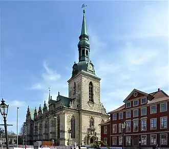 The Marienkirche is a main church (Hauptkirche) in Wolfenbüttel, Lower Saxony, Germany. The official name of the Lutheran church is Hauptkirche Beatae Mariae Virginis (Main church of the Blessed Virgin Mary). Short common names are Hauptkirche BMV, or simply BMV. It is regarded as the first major Protestant church. It was commissioned by Henry Julius, Duke of Brunswick-Lüneburg. Building began in 1608, directed by Baumeister Paul Francke. The portals in the north and south are attributed to Jacob Meyerheine.[1][2]