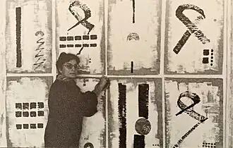 As an abstract painter and advocate for recognition of women artists in France and abroad,[5][6][7] she was the President of the French women artists' group "Art et Regard des Femmes".[8][9]