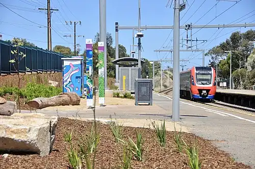 Marino Rocks railway station is located on the Seaford line.[1] Situated in the southern Adelaide suburb of Marino, it is 18.9 kilometres from Adelaide station and leads directly into Nimboya Road Reserve and park.