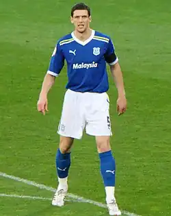 At the start of the 2010–11 season, loan signing Craig Bellamy was appointed team captain,[74] with Hudson maintaining the role of club captain.[75] He was ever-present from the start of the 2010–11 season until 19 March 2011, when he suffered a knee injury in a 3–3 draw with Millwall which ruled him out for up to six weeks.[76] Despite reports claiming Hudson would be out for the season, he returned in Cardiff's 1–0 victory over Preston North End on 25 April.[77] He started the final game of the season against Burnley but was taken off with another injury after 30 minutes.[78] Again reports of Hudson's season being in doubt were proven wrong as he was cleared for the first leg of Cardiff's second consecutive play-off participation.[79] Cardiff drew the first match against Reading 0–0 at the Madjeski Stadium, before losing 3–0 in the return leg.[80]