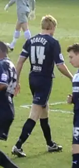 He remained at Fleetwood for the club's first season in League One, starting the season in a peripheral role, playing just one match in the opening two months of the season.[94][95] Roberts made his first league appearance of the season on 4 October 2014, playing the whole match as Fleetwood defeated Port Vale 1–0 at Highbury Stadium.[94][96] After playing the full 90 minutes in a 1–0 away victory against Yeovil Town, he was a regular in the starting line-up for the remainder of the season.[94] On the final day of the regular season, he scored Fleetwood's second goal in the club's 2–1 victory against Port Vale on 3 May 2015, with Roberts scoring from close range after David Ball centred Josh Morris' cross.[97] The game was Roberts' final appearance for Fleetwood, as the club consolidated their place in League One after finishing in 10th place.[94][98] He made 72 appearances for Fleetwood in all competitions over his two years with the club, scoring six times.[95] Roberts was released by Fleetwood upon the expiry of his contract in May 2015, one of 14 first-team players to be released, with Fleetwood manager Graham Alexander stating the club's "drive had shifted to focus on youth development".[99]