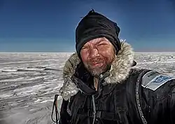 As an expedition leader and an explorer he has since 2003 been to various Polar regions ranging from reaching the Magnetic North Pole, the Geomagnetic North Pole twice, and solo expeditions to both the Geographic North Pole and the South Pole. He has worked with the BBC and Channel 5 on various documentaries, having trained teams of people to undertake expeditions, and led expeditions in the extremes of the planet. His documentaries range from: the life of dog teams in Alaska, surviving solo in the Polar extremes, the reality of global warming and its effect on the Arctic Ocean en route to the North Pole.[5] [6] More recently the aim of his expedition is to explain, to children in their classrooms, using the medium of Skype combined with film and sound, during his expeditions, the effects of global warming in the Polar regions where the effects of climate change and global warming are clearly evident.[6] As all of his expeditions are connected with climate change[5] and to empower the younger generations he works with The Prince's Trust, he is a scout leader[7] for the 1st Pillerton Scout Group,[8] a patron of the Children's University,[9] an explorer for IGGY.[10]