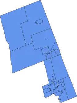 The boundaries of the provincial riding of Markham—Stouffville are identical with those of the new federal riding of Markham—Stouffville, created by the 2012 Canadian federal electoral redistribution. The provincial redistribution came into effect upon the call of the 42nd Ontario provincial election in June 2018.[2]