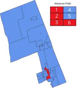 Winning party in each polling division of Markham—Stouffville at the 2022 Ontario general election