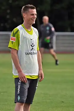 Rosenberg started the 2008–09 season well when he scored four goals and set up Hugo Almeida twice in a 9–3 win over Eintracht Nordhorn in the first round of the DFB-Pokal on 9 August 2008.[155] Seven days later, on 16 August 2008, Rosenberg scored a brace on his debut of the season in a 2–2 against Arminia Bielefeld.[156] A month later, on 20 September 2008, he scored twice in a 5–2 win over Bayern Munich, marking the first time Bremen defeated Bayern at the Allianz Arena.[157] This was followed up by scoring his ninth goal of the season, in a 2–1 win against Erzgebirge Aue in the second round of the DFB-Pokal.[158] After the start of the 2008–09 season, Rosenberg continued to remain involved in the first team despite the new arrival of Claudio Pizarro.[159][160][161][162] Despite a muscular injury sustained while on international duty, Rosenberg later added two more goals by end of 2008, scoring against Hertha BSC and Inter Milan (despite a 2–1 victory, Werder Bremen were eliminated from the group stage and demoted to the UEFA Cup).[163][164][165] On 15 March 2009, Rosenberg scored twice in a 4–0 win over VfB Stuttgart, ending his ten matches without scoring a goal.[166] Despite being sidelined later in the 2008–09 season, he started in the 2009 UEFA Cup Final against Shakhtar Donetsk and played 78 minutes before being substituted, as Werder Bremen went on to lose 2–1 at extra time.[167][168] While not winning the UEFA Cup, the club, nevertheless, won the DFB-Pokal after beating Bayer Leverkusen 1–0.[169] By the end of the 2008–09 season, he had made 47 appearances scoring 13 times in all competitions, making him the club's third highest goal scorer, behind Claudio Pizarro and Diego. However, his goal scoring form came under criticism, due to performance expectations in the first two seasons at Werder Bremen.[170]
