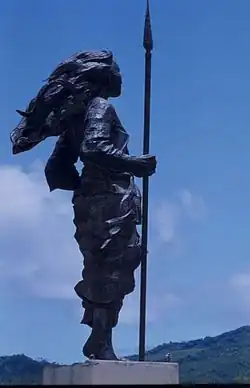 Several monuments have been dedicated to Tiahahu. In Ambon, capital of the province of Maluku, an 8-metre (26 ft) tall statue of her holding a spear was erected in 1977; it stands in Karangpanjang overlooking the Banda Sea.[3] In Abubu, a statue of her leading soldiers while holding a spear was erected and dedicated on the 190th anniversary of her death.[2][3] She also has several items named after her, including a street in Karangpanjang, Ambon, a street (Martha C. Tiahahustraat) in Wierden (Overijssel, Netherlands) and a warship, the KRI Martha Christina Tiahahu.[3]