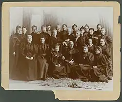 During the second half of her term in Utah's state senate, Cannon set up a commission that provided for regulations regarding contagious disease. She was appointed to the Board of Health by Governor Heber Wells, staying in the position until December 31, 1903. Cannon attempted to prohibit children not vaccinated from attending school in case of a disease outbreak. The Board of Health sent out vaccines; however, the Deseret News spread information that vaccines weren't safe. LDS Church leaders were divided on the subject. One apostle, Brigham Young Jr. was very vocal in his opinions, writing in the Deseret News about the evils of vaccinations.[1] The influence of the Deseret News and Mormon religious leaders limited how many people were willing to be vaccinated. Disease grew rampant in the state of Utah, and the smallpox epidemic of 1898–1899 closed an entire town in Sanpete County. The epidemic Cannon tried to prevent began to spread through the state. To mitigate the effects of disease, Cannon eliminated communal cups attached to water fountains in Salt Lake valley.[1]: 93–97