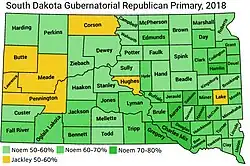Map showing the results of the 2018 Republican Gubernatorial primary in South Dakota by County.