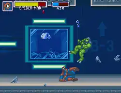 Although War of the Gems is based on a similar storyline as the Capcom arcade game Marvel Super Heroes, and each of the playable characters retains one of the special moves they had in that game, it is not a port; War of the Gems instead features gameplay similar to Final Fight and X-Men: Mutant Apocalypse.[2][3] In 2020, the game was rereleased as part of a home arcade cabinet from Arcade1Up alongside X-Men vs. Street Fighter, Marvel Super Heroes vs. Street Fighter and Marvel vs. Capcom: Clash of Super Heroes.[4]