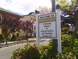 Marven Gardens is surrounded by Ventnor Avenue, Winchester Avenue, Fredericksburg Avenue and Brunswick Avenue. The streets within it are Circle Drive, East Drive and West Drive, and signs at the end of each of these streets pay homage to its Monopoly heritage, with "Marven Gardens" on a yellow background, and replicas of the house playing pieces adorn the posts on each sign. Most of the homes were built in the 1920s and 1930s. Over 48% of the neighborhood's homes being seasonally occupied.[4][5]