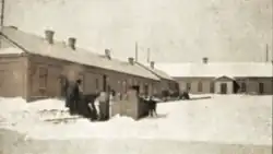 Henderson had left the group with a small team to find Dr Chesney's unit but the women got separated from the Serbian forces, sleeping in the open air, before reaching 'civilization' with the Russian authorities, at Reni. Then they travelled by rail with Dr Inglis group although she said with overcrowding on the train, she saw a Russian doctor prevent a soldier with cholera from boarding, which she said was the most 'pathetic' thing she had seen in her experiences, 'that poor man put off the train and left in the darkness'. The train was also almost bombed by enemy aircraft, but for the quick-thinking of the train driver. Challenges arose in crossing occupied country, and Henderson remarked that, despite the group being in mortal danger, very little equipment was lost. The next tent hospital at Boulboulja was exposed to enemy aircraft by sitting on a wide plain. Again the women in the transport teams worked as soon as they had 'scarcely arrived' to bring in the wounded for urgent treatment, despite their lack of sleep.[54]