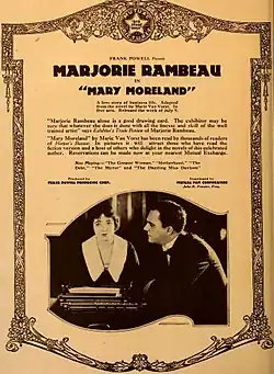 Mary Moreland is a 1917 American silent drama film starring stage actress Marjorie Rambeau that was released through Mutual Film.[1]
