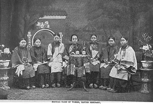 The Canton Hospital was founded by Peter Parker in 1835 at Guangzhou, Guangdong, China. Niles, following her commission from the Presbyterian Board of Foreign Missions as a medical missionary in China, joined the hospital on 1882, while John Glasgow Kerr was in charge.[4] On her arrival, October 19, 1882, in Canton, she lived with Harriet Noyes at the True Light Seminary where she started studying the Cantonese dialect and gave some assistance to Kerr in her spare time. Niles started working at the Canton Hospital in 1883 as superintendent of the women's ward when Kerr was forced to retreat to Hong Kong for a short time.[4]