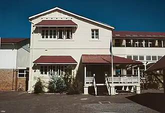 In 1865 the school shifted to a purpose-built schoolhouse at the corner of Alice and Lennox Streets. Despite an additional wing being erected in 1872, the Alice Street premises proved too small to cater for Maryborough's burgeoning population, and the school was moved yet again to the present Kent Street premises in 1877.[2][3]