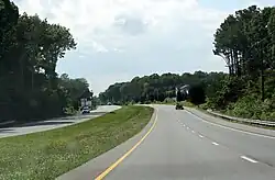 MD 235 was widened in Lexington Park and California between 2000 and 2004 due to increased activity at the military base and its supporting industries. The state highway was widened to six lanes from north of Pegg Road to Town Creek Drive in 2000 and from Town Creek Drive to just north of MD 4 in 2001.[31][32] Expansion to six lanes occurred from FDR Boulevard to north of Pegg Road in 2003.[33] The final section of widening occurred in 2004 when the six-lane section was extended south from FDR Boulevard to MD 246. MD 235 between MD 712 and MD 246 was transformed from a four-lane divided highway to a five-lane road with center turn lane in 2004 as well.[34]