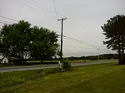 Before leaving the city, the route intersects MD 460, also known as Hall Highway, immediately accessible only from the southbound carriageway.[1] MD 460 provides a direct link to McCready Memorial Hospital. Access to that route from northbound MD 413 is given by Wynfall Avenue, which the road intersects farther south.[2] Very soon after, it intersects MD 358 (Jacksonville Road), which heads north, and Somerset Avenue, which heads south.[1][2] Past the MD 358 intersection, the road narrows to two travel lanes with the median becoming a center left-turn lane as many businesses and side streets front the road. The route becomes the Crisfield Highway, which it is known as for the remainder of its journey. After intersecting Silver Lane, the left turn lane ends, and MD 413 becomes a rural, two-lane undivided highway with full shoulders, exiting Crisfield's corporate limits just north of the Sherwin–Williams (former Rubberset) entrance and continuing past the old site of Carvel Hall Cutlery.[1][2]