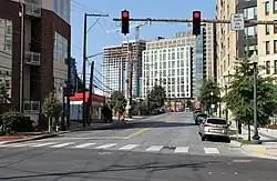 View west approaching the west end of MD 594A at US 29 in Silver Spring